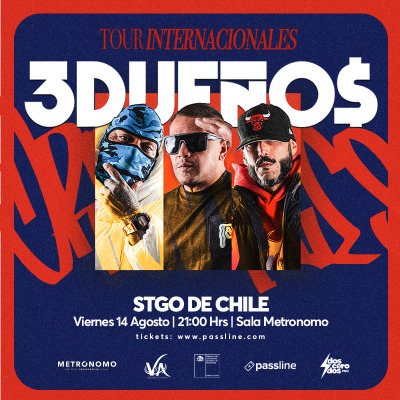 El concierto '3 DUEÑOS | INTERNACIONALES TOUR' en la Sala Metronomo de Recoleta presenta una noche especial con la participación de tres destacados artistas internacionales: Budú, Dj13 y Zibilino. Cada uno con una trayectoria consolidada en la escena musical, estos artistas traen una propuesta que fusiona géneros urbanos, electrónica y ritmos contemporáneos, prometiendo una velada llena de energía y innovación. Budú, reconocido por su estilo versátil y su presencia en la escena musical latinoamericana, ha sabido consolidar su carrera con éxitos que cruzan fronteras. Dj13, un DJ y productor de renombre, es conocido por sus sets enérgicos y su capacidad para hacer bailar a cualquier audiencia, mientras que Zibilino aporta su talento en la producción y mezcla, creando un ambiente vibrante y dinámico. La Sala Metronomo, un espacio emblemático para la música en vivo en Recoleta, será el escenario perfecto para esta noche de celebración musical. La experiencia promete ser inmersiva, con una producción audiovisual de calidad y un ambiente que invita a disfrutar y bailar toda la noche. Este evento es una oportunidad única para escuchar en vivo a estos artistas y vivir una noche de música moderna y urbana en un entorno íntimo y vibrante.