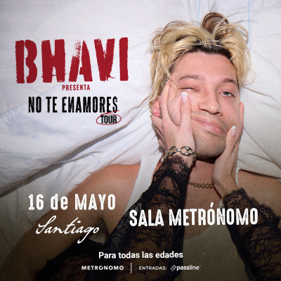 El evento BHAVI - NO TE ENAMORES TOUR promete ser una noche llena de energía y buena música en la Sala Metronomo de Recoleta. Este artista, conocido por su estilo único y su presencia en la escena musical, invita a sus seguidores a disfrutar de un espectáculo que seguramente será memorable. La experiencia ofrecerá una mezcla de ritmos modernos y letras que conectan con el público joven y adulto, creando un ambiente vibrante y lleno de entusiasmo. La sala, reconocida por su excelente acústica y ambiente íntimo, será el escenario perfecto para que los asistentes vivan una noche especial. La propuesta de BHAVI ha sido muy bien recibida en la escena local, consolidándose como uno de los artistas emergentes más interesantes del momento. La puesta en escena combina música en vivo, interacción con el público y una producción cuidada que garantiza una experiencia completa. La noche será ideal para quienes disfrutan de la música urbana y buscan un evento cercano y auténtico. No te pierdas la oportunidad de ser parte de esta experiencia y disfrutar de un espectáculo que promete dejar huella en la memoria de todos los asistentes.
