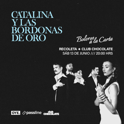 'Catalina y las Bordonas de Oro - Boleros a la Carta' es un evento musical que celebra la belleza y la nostalgia del género bolero en un ambiente íntimo y acogedor en el Club Chocolate de Recoleta. Este concierto reúne a una talentosa agrupación que rinde homenaje a los clásicos del bolero, un género que ha marcado generaciones con sus letras románticas y melodías inolvidables. La propuesta invita a los asistentes a sumergirse en un viaje musical lleno de emociones, donde la voz de Catalina y su banda interpretarán temas emblemáticos que han resistido la prueba del tiempo. La atmósfera del club, con su ambiente cálido y cercano, promete una velada llena de romanticismo y buena música. La experiencia busca conectar a los asistentes con la esencia del bolero, creando momentos de nostalgia y alegría. La presencia de artistas reconocidos en la escena local garantiza una interpretación de calidad y una noche llena de magia musical. La adquisición de entradas en Passline facilita la participación en este evento que será un imperdible para los amantes del género y quienes disfrutan de una noche de música en vivo. La propuesta es perfecta para quienes buscan una experiencia cultural y musical en un entorno íntimo y especial.