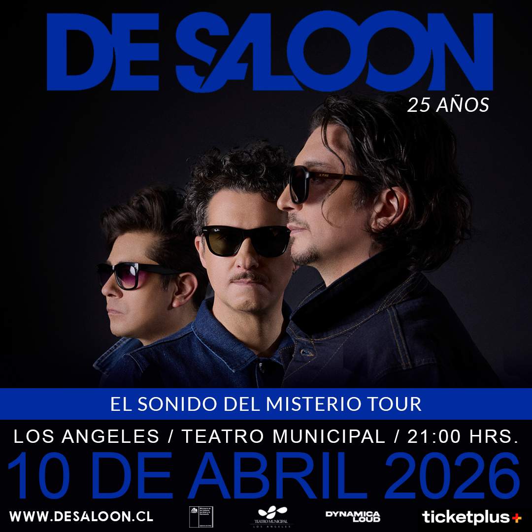 El evento en Los Ángeles presenta un concierto especial de Título: "De Saloon Lanzamiento nuevo disco “El sonido del Misterio” + Grandes Éxitos en Los Ángeles". Este grupo chileno, reconocido por su estilo único y su trayectoria en la escena musical nacional, ofrecerá una noche llena de energía y nostalgia, interpretando su nuevo material junto a sus éxitos más emblemáticos. La experiencia promete un ambiente vibrante y emotivo, ideal para los amantes del rock y la música en vivo. La presentación en el Teatro Municipal de Los Ángeles es una oportunidad imperdible para disfrutar de una banda que ha sabido consolidar su sonido y su presencia en la escena musical chilena. Los asistentes podrán sumergirse en un espectáculo que combina la innovación de su nuevo disco con la calidez de sus clásicos, en un espacio que favorece la cercanía y la interacción con el público. La banda, con años de trayectoria y múltiples reconocimientos, ha sabido mantenerse vigente y relevante, ofreciendo siempre shows de alta calidad. La noche será una celebración de la música chilena, con un repertorio que refleja su evolución y su compromiso con sus seguidores. Sin duda, este concierto será un momento memorable para quienes disfrutan del buen rock y la música en vivo en un entorno cultural de primer nivel.