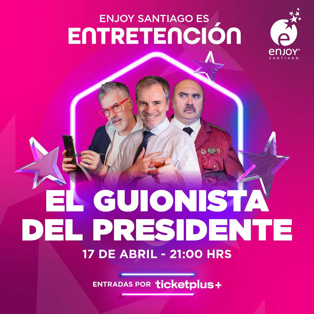 El espectáculo "El Guionista del Presidente" en Enjoy Santiago ofrece una experiencia teatral y de comedia que combina sátira política y humor inteligente. Con un precio de $11500 CLP, esta obra invita a los asistentes a reflexionar sobre el poder, la política y las figuras públicas a través de un guion agudo y entretenido. La función se realiza en un espacio que combina comodidad y buen ambiente, ideal para disfrutar de una noche de teatro y risas. La obra presenta personajes caricaturescos y diálogos mordaces que buscan provocar la reflexión y el entretenimiento simultáneamente. La puesta en escena es moderna y dinámica, diseñada para captar la atención del público desde el primer momento. La temática política y social hace que sea un evento relevante y actual, perfecto para quienes disfrutan del teatro con contenido y un toque de humor crítico. La experiencia promete ser memorable, dejando a los asistentes con una mirada diferente sobre la política y la figura del presidente, todo en un ambiente distendido y divertido. Sin duda, una opción imperdible para los amantes del teatro y la sátira en Santiago.