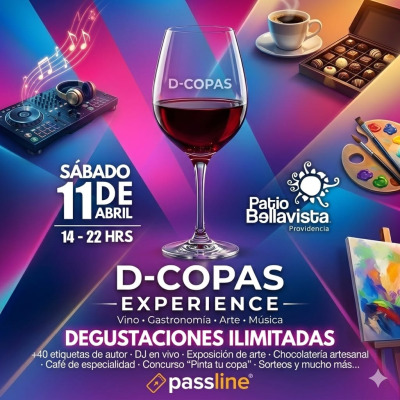 La Feria de Vinos D-Copas en Patio Bellavista representa una cita imperdible para los amantes del vino en Santiago. Este evento, que regresa en abril, ofrece una experiencia única donde los asistentes podrán degustar vinos de más de 16 viñas diferentes, permitiendo descubrir nuevas etiquetas y ampliar su paladar. La feria se desarrolla en un ambiente vibrante que combina vino, gastronomía, arte y música, creando un espacio perfecto para compartir con amigos y disfrutar de una tarde llena de sabores, cultura y buena energía. Los visitantes podrán recorrer diversos stands, conversar con los productores y participar en experiencias entretenidas diseñadas para enriquecer su conocimiento enológico. Además, la jornada incluye una exposición de arte titulada “El Jardín de los Delirios”, un concurso de pintura para “Pinta tu copa”, y degustaciones de chocolates artesanales y cafés de especialidad, complementando la oferta sensorial del evento. La música en vivo, a cargo de un DJ, aportará un ambiente festivo y dinámico, ideal para celebrar el vino en un entorno que fusiona cultura y diversión. La entrada, que tiene un valor de $15.000 CLP, incluye una copa oficial grabada, degustaciones ilimitadas y la participación en sorteos y sorpresas. Este panorama es perfecto para quienes desean vivir una experiencia cultural y sensorial en un espacio emblemático de Santiago, donde el vino, el arte y la buena compañía se unen en una celebración que promete dejar huella en cada asistente.