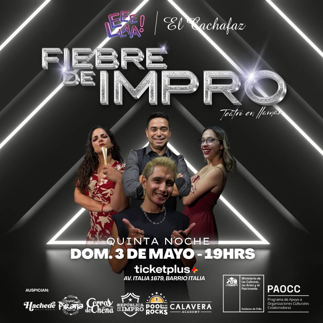 El 'Show de Impro-Fiebre de Impro-Domigo 3 de Mayo 19hrs' en Ñuñoa es una propuesta teatral que combina humor, creatividad y participación del público en una noche llena de improvisación teatral. Con un precio de 8800 CLP, esta función promete risas y momentos espontáneos, donde los actores improvisan escenas en tiempo real, interactuando con la audiencia y creando situaciones cómicas y sorprendentes. La categoría 'teatro' refleja la naturaleza del espectáculo, que se desarrolla en un formato dinámico y cercano, ideal para quienes disfrutan del humor inteligente y la interacción en vivo. La obra, que se presenta en Av. Italia 1679, busca ofrecer una experiencia diferente y entretenida, donde la improvisación es la protagonista. La noche del domingo 3 de mayo será perfecta para quienes buscan una alternativa cultural y lúdica, con un toque de humor y creatividad. La puesta en escena, con actores experimentados en improvisación, garantiza una velada llena de risas y buen humor. Es una oportunidad para desconectar, reír y disfrutar de un espectáculo que rompe con lo convencional, promoviendo la participación del público en cada escena. Sin duda, un plan ideal para cerrar el fin de semana con alegría y buen ánimo.